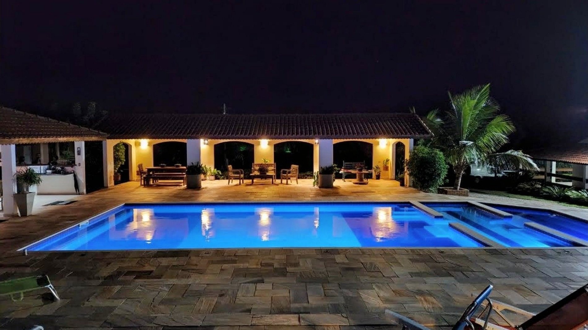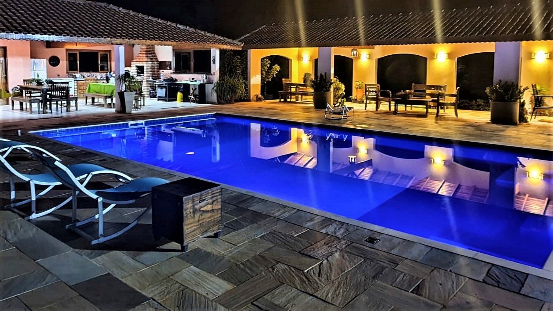 INFRAESTRUTURA COMPLETA PARA LAZER E CONFORTO Ampla Área Verde: 72.000m² com campo de futebol, capela, estufas, bosque, lagos e pomar. Salas de Jogos e Estar: Mesa de snooker, projetor, TV a cabo, bar e confortáveis sofás. Piscina: Com área infantil, ideal para toda a família. Cozinha Integrada: Churrasqueira completa, forno de pizza e utensílios diversos.